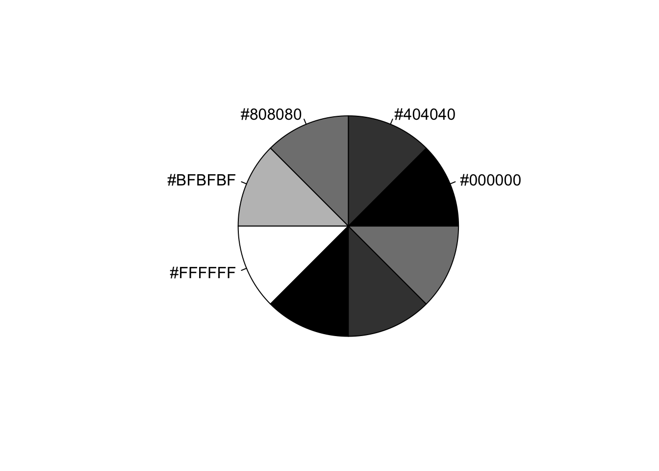 pie(rep(1, 8), labels=mygrays, col=mygrays)