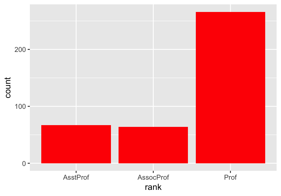 p1 <- ggplot(data=Salaries, aes(x=rank)) + geom_bar()