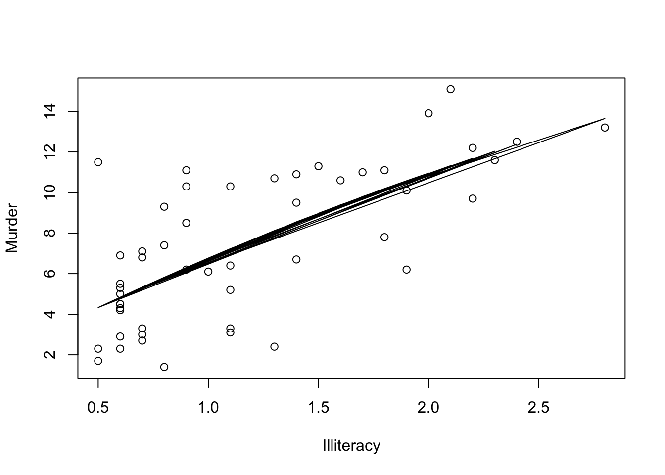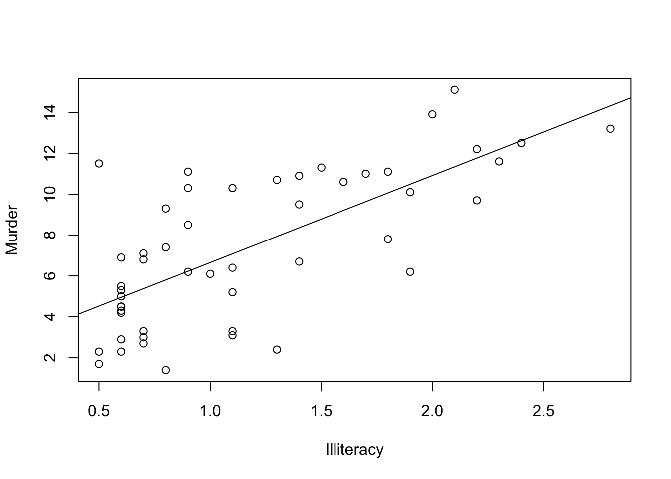"Illiteracy", "Income", "Frost")])A simple(bivariate) regression with the plot